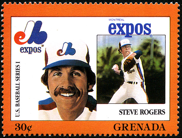 No. Scott: 1672g -- Año de emisión: 1988 -- Valor facial: 30c -- Multicolor -- Con perforación: 14 -- Tipo de Impresión: Litografía. Timbre perforado del profesional beisbolista de los Expos de Montreal Stephen Douglas Rogers. Para más información favor de dirigirse a biblioteca@mufi.org.mx.