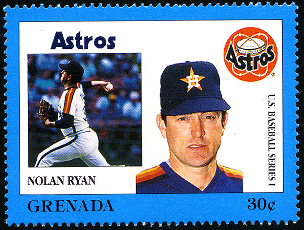 No. Scott: 1666d -- Año de emisión: 1988 -- Valor facial: 30c -- Multicolor -- Con perforación: 14 -- Tipo de Impresión: Litografía. Timbre perforado del profesional beisbolista de Los Astros de Houston Lynn Nolan Ryan , Jr. Para más información favor de dirigirse a biblioteca@mufi.org.mx.