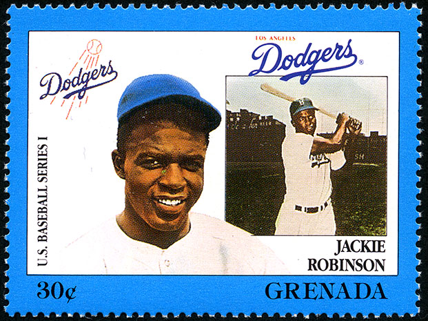 No. Scott: 1666a -- Año de emisión: 1988 -- Valor facial: 30c -- Multicolor -- Con perforación: 14 -- Tipo de Impresión: Litografía. Timbre perforado del profesional beisbolista de Los Ángeles Dodgers Jack Roosevelt Robinson. Para más información favor de dirigirse a biblioteca@mufi.org.mx.