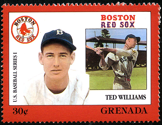 No. Scott: 1667g -- Año de emisión: 1988 -- Valor facial: 30c -- Multicolor -- Con perforación: 14 -- Tipo de Impresión: Litografía. Timbre perforado del profesional beisbolista de Los Boston Red Sox Theodore Samuel Williams. Para más información favor de dirigirse a biblioteca@mufi.org.mx.