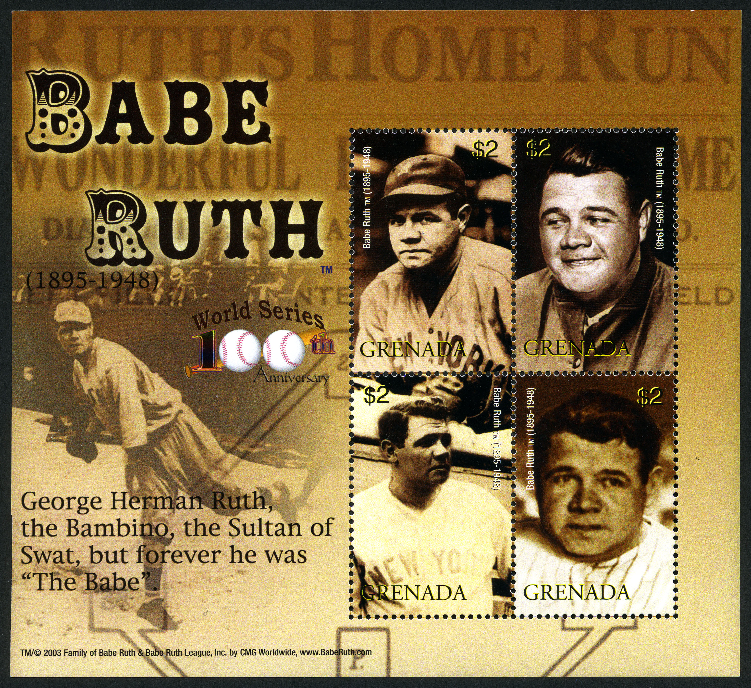 No. Scott: 3477 -- Año de emisión: 2004 -- Valor facial: 4* 2c -- Multicolor -- Con perforación: 14 -- Tipo de Impresión: Litografía. Hoja recuerdo en color café, de cuatro timbres con diferentes fotografías del beisbolista. Para más información favor de dirigirse a biblioteca@mufi.org.mx.